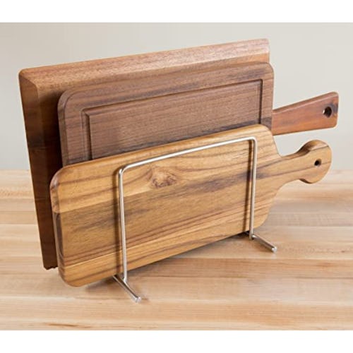 Storing cutting boards is a problem. This cutting board rack is the solution. Set it in a cupboard or out on your counter and stand all your boards in it. They will dry beautifully after washing and be easy to grab and use. If you have a beautiful selection of boards, it turns them into an on-counter display that doesn’t hog too much space. It comes in six styles.