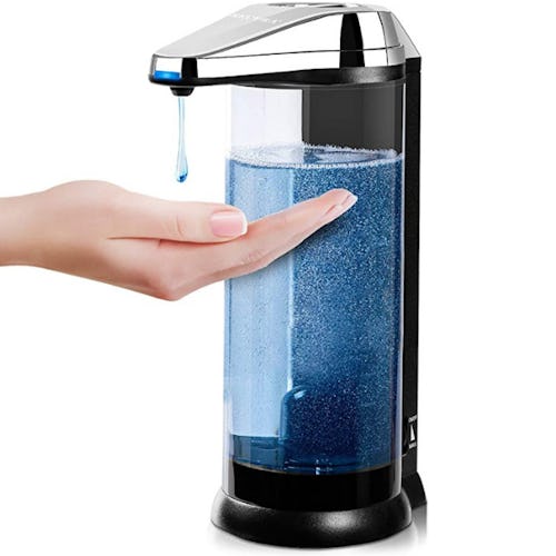 Wave your hand under this touchless soap dispenser and it will automatically drop a precisely measured quantity of your liquid soap into your hand. You choose how much soap each serving gets with a volume switch. You can set it on the counter or mount it to the wall. It holds 17 ounces of soap so you don’t have to refill it often.