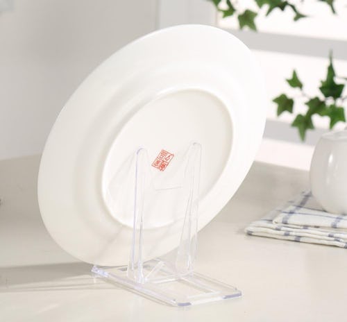 Turn a beautiful plate into a display with this acrylic display stand. It turns a shelf in the kitchen or a corner of the counter into a bit of beauty. But that plate or serving platter is also easy to grab and use. The stand itself is nearly invisible. It comes in three sizes and there is a black version.