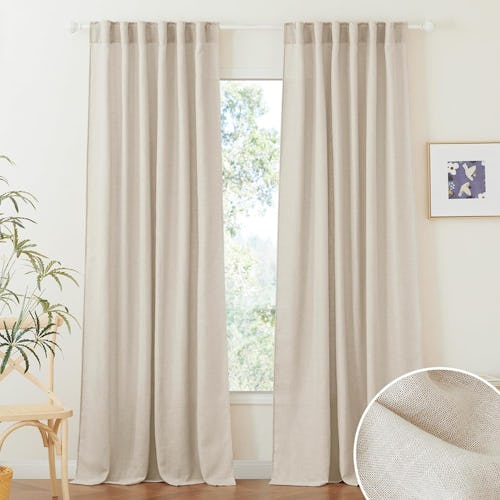 Hang these light, airy semi-sheer curtains to create a summery, elegant look in your home while filtering out light and introducing a touch of color. The linen blend fabric has an open weave and a natural drape that pools beautifully on the floor. Choose from 15 colors and 13 sizes.