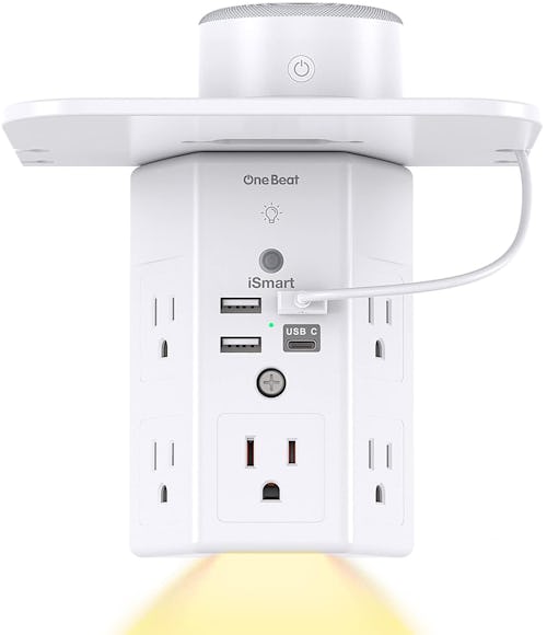 This multi-plug outlet transforms one humble wall outlet into a powerhouse of utility. It turns those two measly plugs into five standard plugs, three USB ports, and one USB-C plug so you can charge everything from your phone to your tablet to your electric toothbrush. It also has a shelf on top so you have a place to set your phone and a built-in night-light comes on when the room is dark and turns off again when the lights are on.
