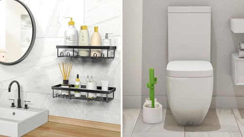 These shower caddies stick right onto your tiles with adhesive, so you’re not stuck with a caddy hanging on the showerhead. Not only can you style these rustproof metal caddies wherever you want in the shower, but they can also hold up to 40 pounds to pack in as many skincare products as you want.
