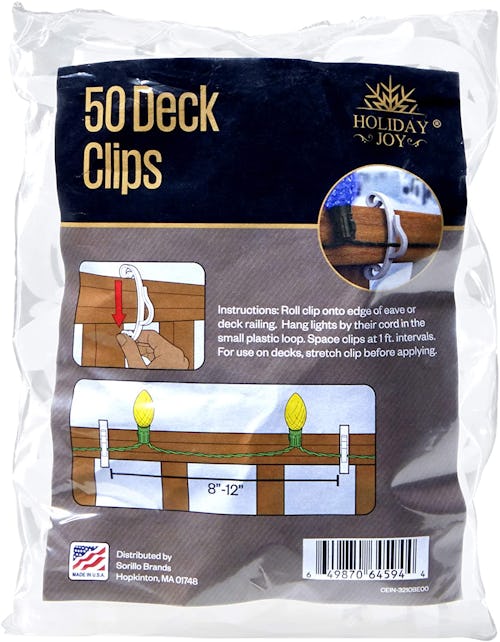Wrapping your string lights around your deck railing can lead to some lights sitting on the outside of your rail. Instead, hang them up using these clips. They provide a secure hold without damaging the woodwork — and you can use them with railings between a quarter and 1.5 inches thick. “They are a tight fit, but I'm actually glad because they keep the lights where they should be [...],” wrote one reviewer. “A few go a long way, so the pack of 50 will last for a very long time.”