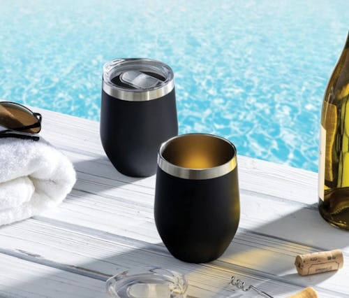 Don’t stress about breaking these wine tumblers, as each one is made from tough stainless steel that won’t shatter when dropped. Their insulated walls help keep white wine chilled whereas red wines stay at room temperature. Plus, the sliding lid helps prevent spills in the event they get knocked over.