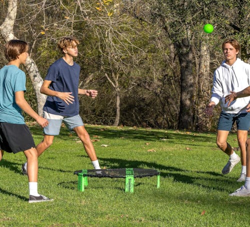 Consider grabbing Slammo for outdoor playtime. Two teams of two people face off by bouncing the ball back and forth to each other on the net, with a point being scored whenever someone misses a shot on the other team. One reviewer wrote, “We assembled it quickly on the beach and had a blast playing. It's so much fun for teenagers and adults.”