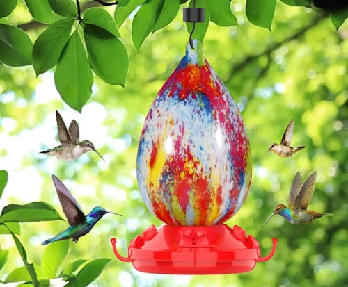 Invite flitting hummingbirds to your backyard with this colorful feeder. The base features a silicone ring to ensure it doesn’t leak, while multiple ports let more than one hummingbird feed at the same time. And if your backyard tends to get hot, the plastic frame is less likely to heat up in the sun than comparable metal feeders.