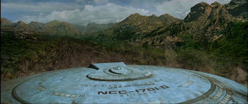 For Voyager fans, the Badlands is the rough and tumble area of space that flung Voyager halfway across the galaxy to the Delta Quadrant. Yes, Voyager also launched in 2371. And while DS9 was dealing with shapeshifters and a Riker doppelgänger, and Voyager was trying to figure out how to get home, the beloved USS Enterprise-D was forced to separate its saucer section and crashland on the planet Veridian III. While Will Riker (the good one) is crashing the Enterprise in Star Trek Generations, Picard is fighting a mad scientist named Dr. Soran and dealing with a time-traveling Captain James T. Kirk. All in the year-of-our-Q, 2371.