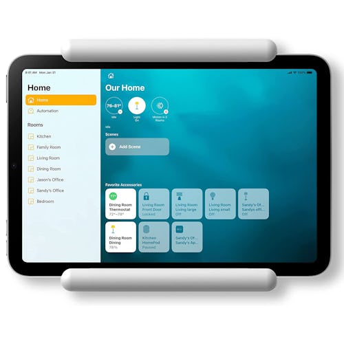 Using the included screws and anchors, hang your iPad on the wall using this sleek mount. From there, you can use the device to make to-do lists, access a shared calendar, and more. The iPad is held between two pieces of silicone to protect it.