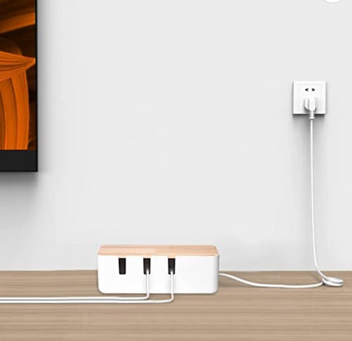 Instead of letting all your wires and chargers make a mess, conceal them all in this cable management box. Its wooden lid will keep them all dust-free and the side slots make each still easy to access. At over 11 inches long, it can store an entire power strip.