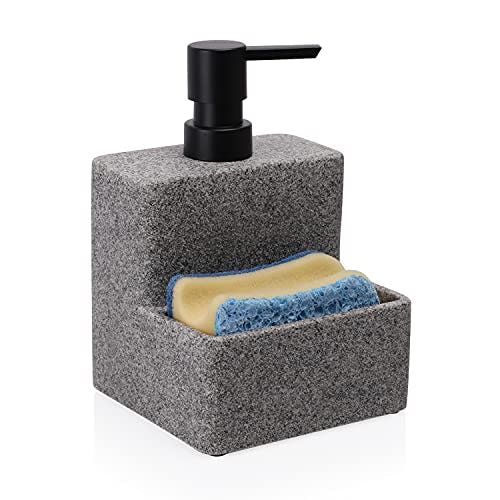 zccz Soap Dispenser with Sponge Holder, Liquid Hand and Dish Soap Dispenser Pump Bottle and Sponge Holder 2 in 1 for Kitchen Sink Bathroom Counter Storage and Organization