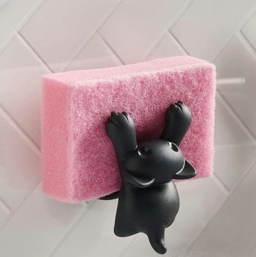 Get your sponge off the countertop with this clever sponge holder that uses a suction cup to stick to the wall. It’s shaped like an adorable cat with its paws supporting the sponge which will drain and dry faster than sitting flat beside the sink. A scrubby sponge is included with the cat available in gray or white.