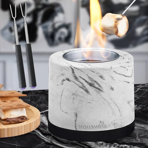 If you’re not blessed with a backyard, don’t fret. This tabletop fire pit allows you to cook up s’mores and other treats from inside your home. Made of concrete in a chic finish, it’s fueled with isopropyl or rubbing alcohol and doesn't create any smoke or odor. There are even two roasting sticks included to get you started right away.