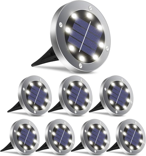 Lend some helpful low-profile illumination along pathways by installing these solar ground lights. Available in a pack of eight, they are inserted into your lawn using two interlocking spikes that are removable if you prefer to have the lights along your steps, for example. They’ll automatically charge during the day to provide up to 10 hours of light at night with the ability to withstand all kinds of weather conditions.
