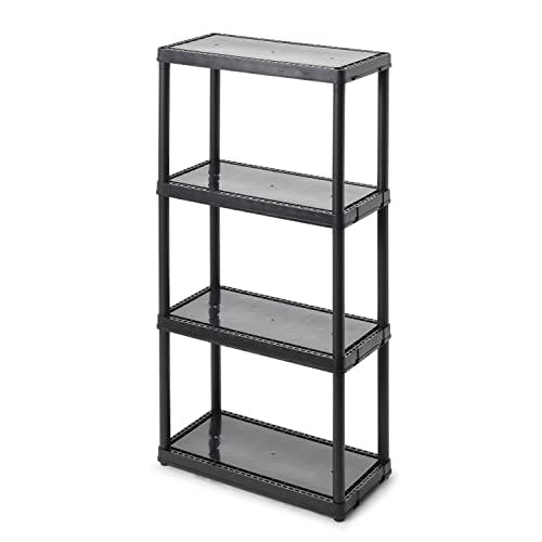 Gracious Living 4 Shelf Fixed Height Solid Light Duty Storage Unit 24 x 12 x 48" Organizer System for Home, Garage, Basement, and Laundry, Black