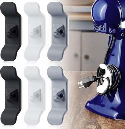 These game-changing organizers stick right on the back of your appliances to give you a tidy spot to wrap up cords. They have two handles to spin the cord around and a flexible holder in the middle to keep the end of the cord in place. They also come in a pack, so you can tidy up all of those messy-looking appliances.