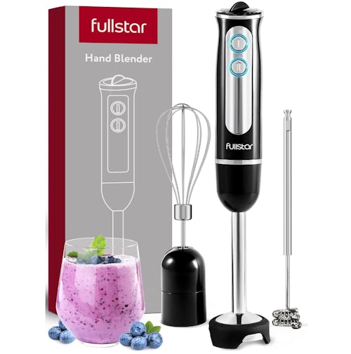 This immersion blender comes with three head attachments — a frother for coffee, a whisk for eggs or cream, and a blender with a pan protector for soups, sauces, and smoothies — so you can quicken your cooking time. The blender has nine speed settings so you can make your soups as pureed or chunky as you want without transfering them from the pot to a bulky countertop blender.