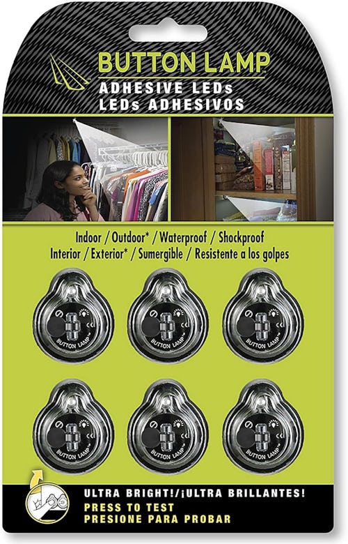 Illuminate dark corners and crevices with this set of adhesive LED button lights. The tiny wireless lamps stick to most surfaces, providing 13 lumens of bright light in cabinets, closets, and other dark spaces. Batteries are included, and you can turn the lights on and off with a simple toggle switch.