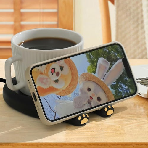 This Adjustable Cat-Shaped Mug Warmer That Can Also Hold Your Phone