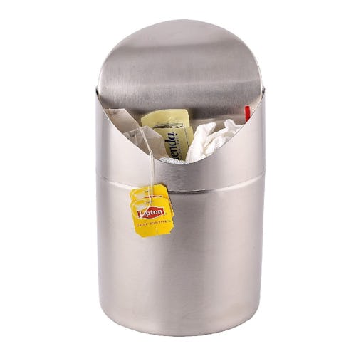 Not only is this countertop trash can a great place to toss tea bags, sugar packets, and other small pieces of garbage, but its brushed stainless steel exterior also helps keep it looking clean and fingerprint-free. The best part? Its swing-top lid helps conceal all the trash inside until you’re ready to empty it out.