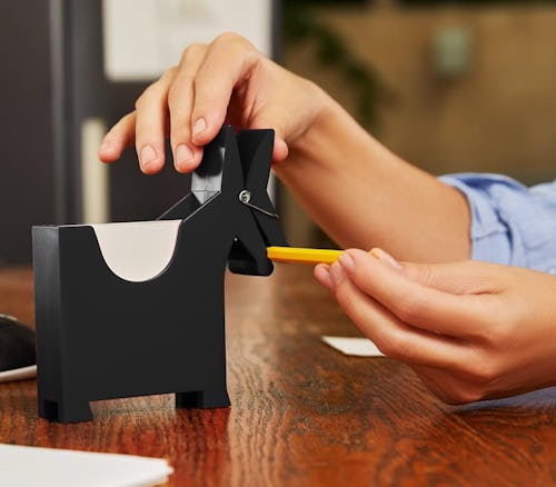 Add some fun to your desk and store your memos and sticky notes in this adorable donkey-shaped holder. The burro’s body is the perfect size to hold an entire pack of sticky notes, and after you scribble your reminder on one, you can stick it into his clothespin mouth to keep it front and center while you’re working. When you don’t have a daily reminder, the mouth is also great for holding pens.