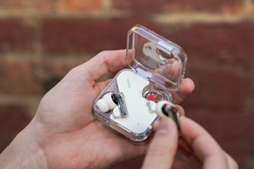 As far as hardware goes, battery life has performed as expected; Nothing estimates up to 24.5 hours with the Ear charging case and 5.5 hours of playback outside the case when using active noise-cancellation. Pretty much everything else is the same: squeeze controls, a very similar-sized case, and see-through plastic for exposed circuitry. And as long as we’re talking about battery, you should know that by shelling out $50 more for the Ear, you’re getting wireless charging as well.