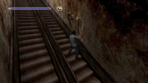 Alongside shaking up the cinematic delivery of the narrative via camera angles, Silent Hill 4 also introduced a myriad of gameplay changes to its combat. The first visibly notable change is a visible health bar on the upper left-hand side of the screen display. This addition effectively lampshades this entry in the series, famously regarded as an immersive cinematic experience, as a step toward Resident Evil's action-oriented survival horror vibes.