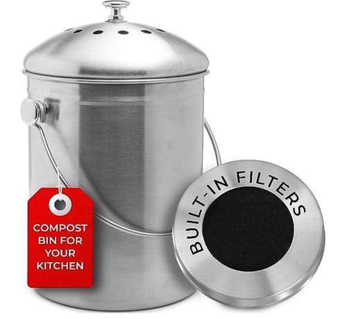 Starting a composting habit has never been easier. This countertop compost bin is made with stainless steel and has a replaceable carbon filter inside the airtight lid to reduce odors. It’s also leak-resistant, easy to clean, and holds up to 1.3 gallons of scraps at once.