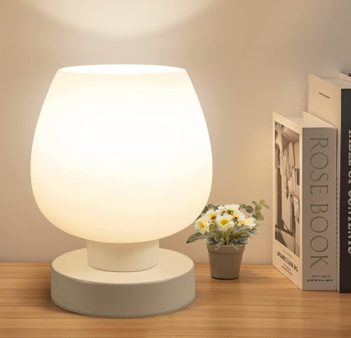 This bedside table lamp looks like modern art with its tulip shape, metal base, and frosted opal glass shade. Its touch controls let you filter through its three brightness settings, while its included LED bulb is warm and flicker-free for eye-friendly illumination.