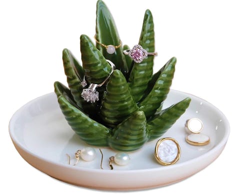 This adorable trinket dish holds your rings on its ceramic aloe plant and your other jewelry inside of its white tray. “Very cute and great quality,” one reviewer wrote, plus it “makes a wonderful gift for any plant enthusiast.”