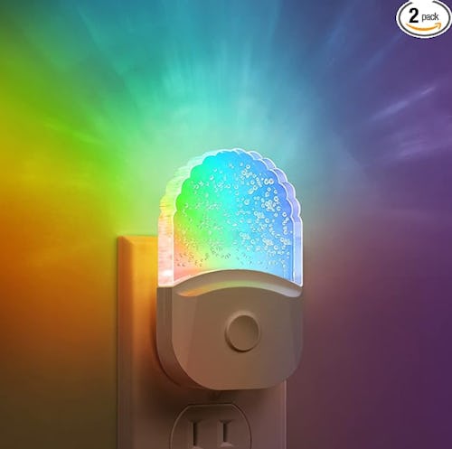 Perfect for dim hallways or adding a gentle glow to bedrooms, this plug-in night-light features a fun bubble design and a slim profile that doesn’t block the lower outlet. You can choose from either steady colors, warm white light, or rotating colors, and it features an automatic dusk-to-dawn light sensor.
