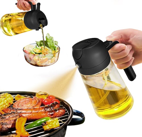 This clever oil dispenser gives you the option to either pour or mist your favorite cooking oil. The dispenser has an impressive capacity, and the wide opening makes it easy to fill. This borosilicate glass bottle also features a prominent spout and a comfortable handle that helps to keep your hands oil-free.
