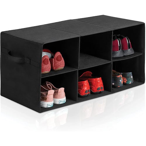 This shoe organizer is made of super durable and reinforced fabric so it’s freestanding and strong enough to hold up to six pairs of shoes — one in each compartment. At only 13 inches high, this unassuming organizer can fit underneath your entryway bench, on your closet shelves, or even underneath some beds to keep your clutter at bay and your shoes in one place.