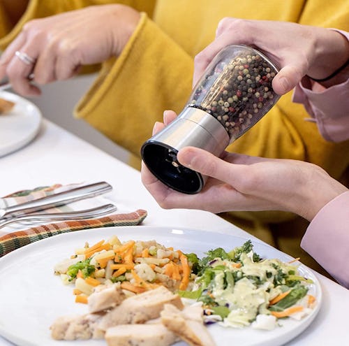 Not only do the right salt and pepper grinders look good on your table, but they also help you create better tasting food in the process. These have a glass base with a stainless steel top that allows you to adjust the coarseness to five different grind sizes depending on your needs. And they come with a funnel to easily refill.