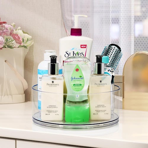 These clear turntables spin 360 degrees so you always have access to your bathroom, refrigerator, or pantry essentials. They’re great for spices, medicine, condiments, and more, and they have a raised edge so everything stays in place. Plus, depending on what’s inside, they’re stackable to save additional space. It’s no wonder that these have a 4.8-star rating on Amazon.