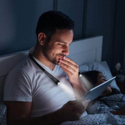 This neck reading light strives to give you the utmost comfort by offering three color temperatures, three brightness levels, and adjustable arms. It can run for up to 80 hours per charge and it’s so lightweight that you’ll hardly feel it.