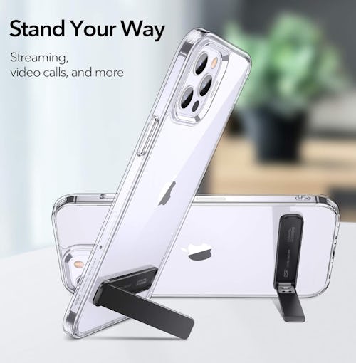 Hands-free calls will be easier after adding this phone kickstand to your cart. It adheres to the back of your device and gives you the ability to adjust its angle for comfortable viewing (it works horizontally and vertically). It comes in black and silver in the listing.