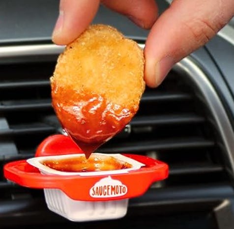 You no longer have to attempt to use a paper bag as a plate to hold ketchup or barbecue sauce while on the go. This pair of dip clips will securely attach to your car’s air vents, giving you a spot to pop various shapes of containers from a restaurant — they also come with removable ramekins to squeeze packets into.