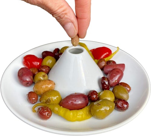 This olive serving dish keeps olives separate to avoid mixing flavors and it even has a pit port in the middle. The two pieces come apart for emptying and it’s dishwasher- and microwave-safe.
