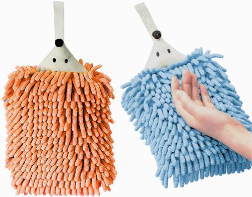 The fun hedgehog design of these hand towels will bring some fun to your bathroom. They feature extremely absorbent microfiber chenille material that can also be used to wipe glass and similar surfaces. The set comes with two pieces and a gray and pink version is also available in the listing.