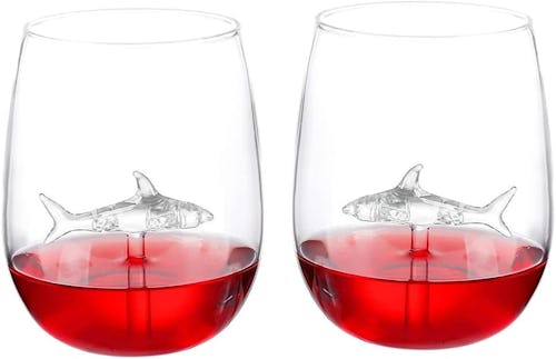 This fun pair of shark wine glasses