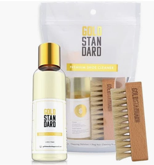 Tuck this shoe cleaning kit into your shoe storage area so it's easy to give your kicks a quick sprucing up after you go on a dusty walk or before you go out on a date. There are no harsh chemicals in this water-based cleaning solution and it’s easy to use. Wet the brush, add some solution, and give your shoes a scrub with the brush.