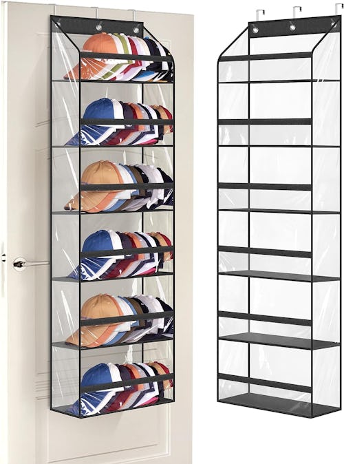 Instead of piling them on top of each other or stuffing them into any free spot that you find, keep your collection on this hat rack — it can hold up to 72. Its six shelves are held up by three strong hooks that can slide over any door. The shape of each cap will be protected and finding the one that matches your outfit will be fast.