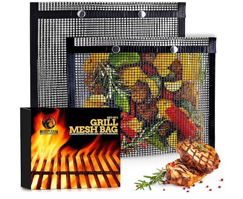 When you want to grill a delicate piece of fish, throw some veggies on the grill for a side, or bring your food to a group BBQ, put it in these mesh grill bags so it will stay free of whatever mess is on the grilling grates, won't fall into the fire, and so your meal stays together in the fray. This is a set of two bags.