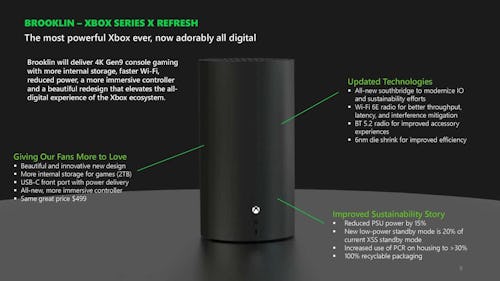 We first learned that Microsoft was considering changing the design of the upcoming Xbox Series X in September. Documents suggested that instead of the traditional boxy look, the new Xbox would have a cylindrical design and would come without a physical disc drive. According to a roadmap revealed in the hearing, Microsft planned to release this rounder refresh, which went by the codename Brooklin, for the 2024 holiday season.