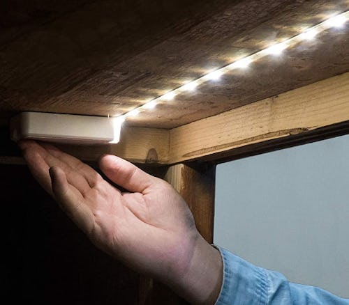 Shine on with these evenly spaced LED strip lights that brighten up any kitchen cabinet or shelf. Setting up is a breeze — just stick them to a wood, metal, or plastic surface and turn on. The discreet design keeps the strip out of sight, with an easy-to-find power button. Ideal for display cabinets, kitchen shelves, pantries, closets, and more, this cordless LED light strip is a versatile lighting solution for any hard-to-light space in your home.