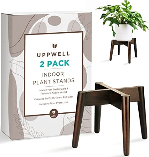 UppWell Indoor Plant Stand, Pack of Two | Fits Plant Pots Between 8' to 12' | Holds up to 150lbs per Stand | Made From Sustainable Acacia Wood | One Tree Planted with Every Purchase