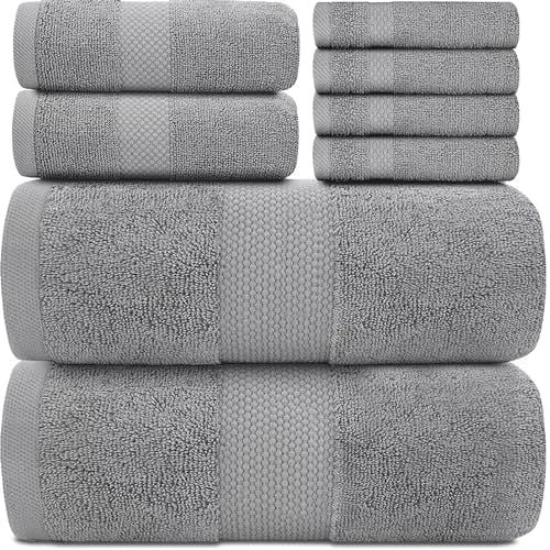 White Classic Luxury Light Grey Bath Towel Set - Combed Cotton Hotel Quality Absorbent 8 Piece Towels | 2 Bath Towels | 2 Hand Towels | 4 Washcloths [Worth $72.95] Light Grey | 8 Pack