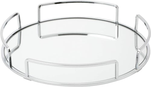 Enhance your vanity with this tray featuring a chrome finish and a reflective glass base. Whether you’re storing cosmetics, jewelry, or toiletries, this round tray keeps everything organized in one place. Its elegant design fits beautifully on bedroom dressers or bathroom countertops. Shoppers love its gorgeous appearance, sturdy build, and ample size.