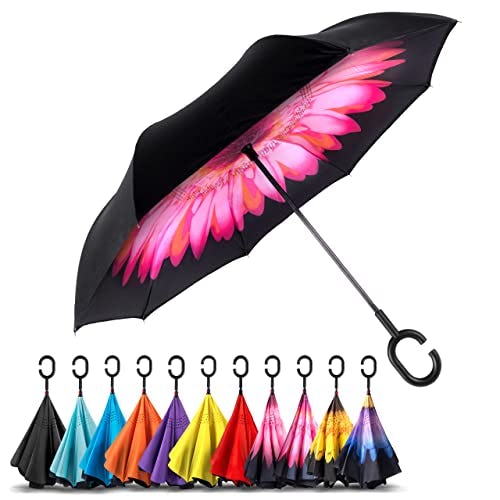 This reversible umbrella is strong enough to withstand even the windiest weather conditions. Its double-layered canopy is fully water resistant, keeping you dry, and its reverse folding frame prevents rain from dripping out. You'll also appreciate its rustproof C-shaped handle, which is easy to hold with just one hand.