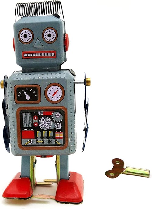 Crank up the nostalgia with this charming wind-up toy robot. With a few turns of the key, watch it march forward, a delightful nod to the mechanical toys of yesteryear. Its intricate gears and retro design capture the essence of vintage engineering, making it both a playful desk accessory and a conversation starter.